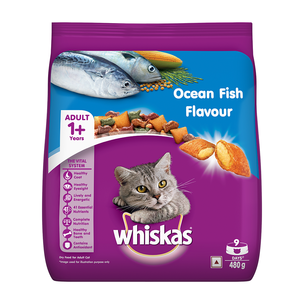 WHISKAS® Ocean Fish dry cat food is a nutritionally complete and balanced recipe that has carefully been created to cater to the requirements of an adult cat’s system. Flavorful pockets, filled with not only the best ocean fish and poultry ingredients but also loads of other essential nutrients that will help your cat lead a healthy, active and long life.