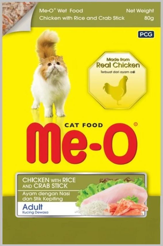 Me-O Chicken Rice and Crab Stick Wet Cat Food is balanced, complete, and highly digestible. Loved by cats due to its excellent taste. Formulated to meet or exceed NRC and AAFCO standards for cat nutrition.