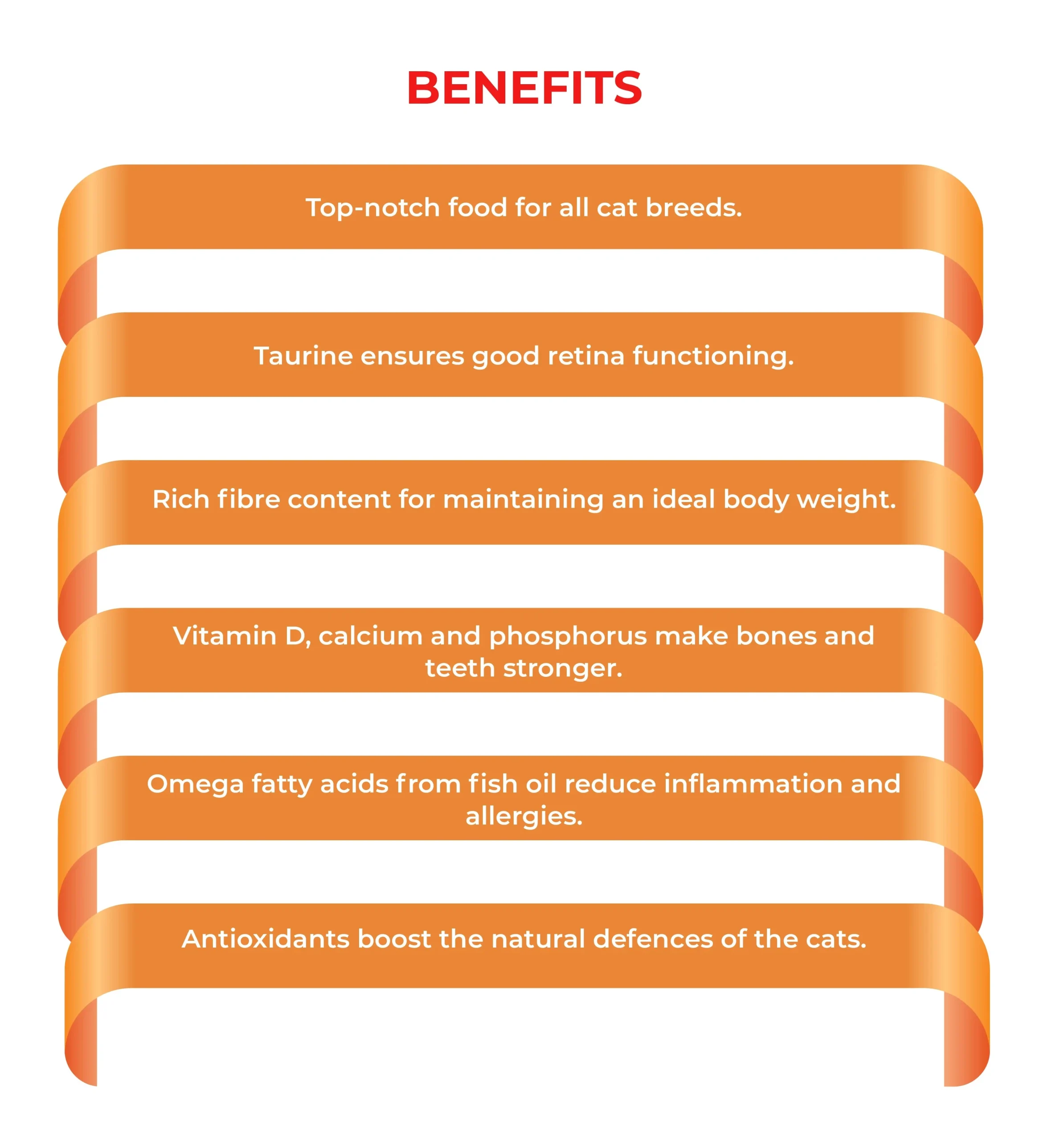 - Â Contains Taurine that is essential for the proper functioning of the eyes and to improve the cat’s eyesight.