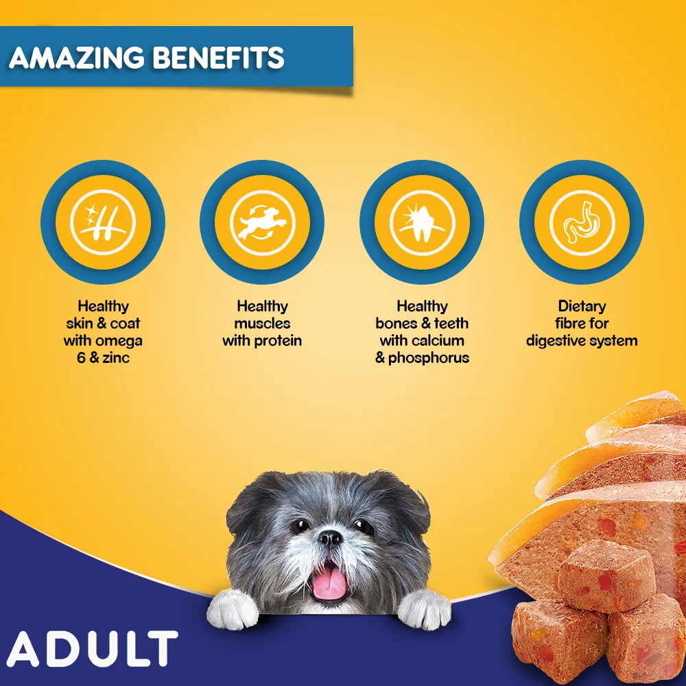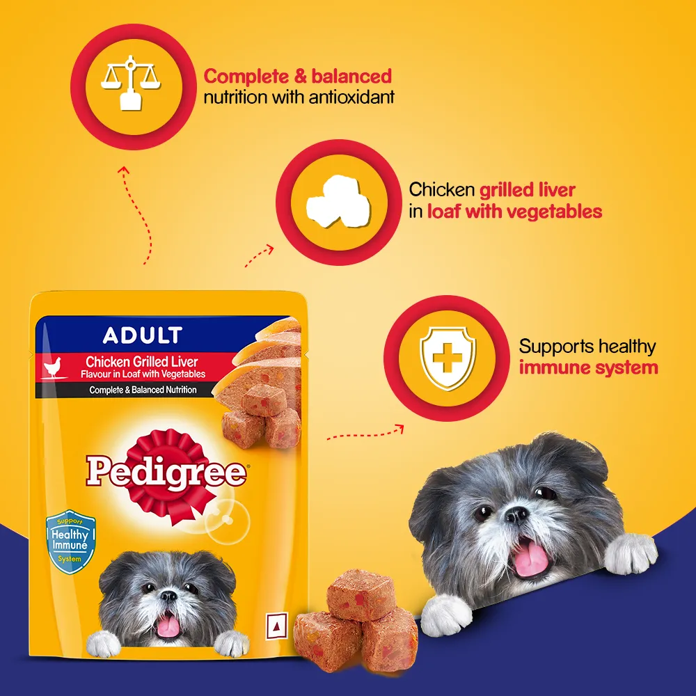 PEDIGREEĀ® Loaf Adult food is 100% complete and balanced, the PEDIGREEĀ® Loaf range is available in two variants. Easy to feed, it consists of high-quality ingredients, with the essential nutrition required to keep your puppy happy and healthy. You can also add PEDIGREEĀ® Loaf to regular dry pet food or home cooked food to serve up a meal that your puppy will love.
