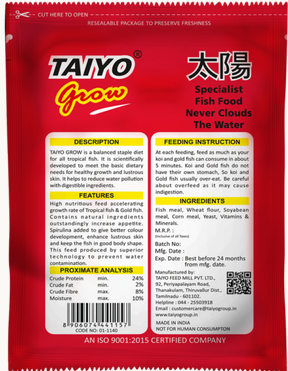 Taiyo is a balanced staple diet for all tropical fish. It is scientifically developed to meet the basic dietary needs for healthy growth and lustrous skin. It helps to reduce water pollution with digestible ingredients.